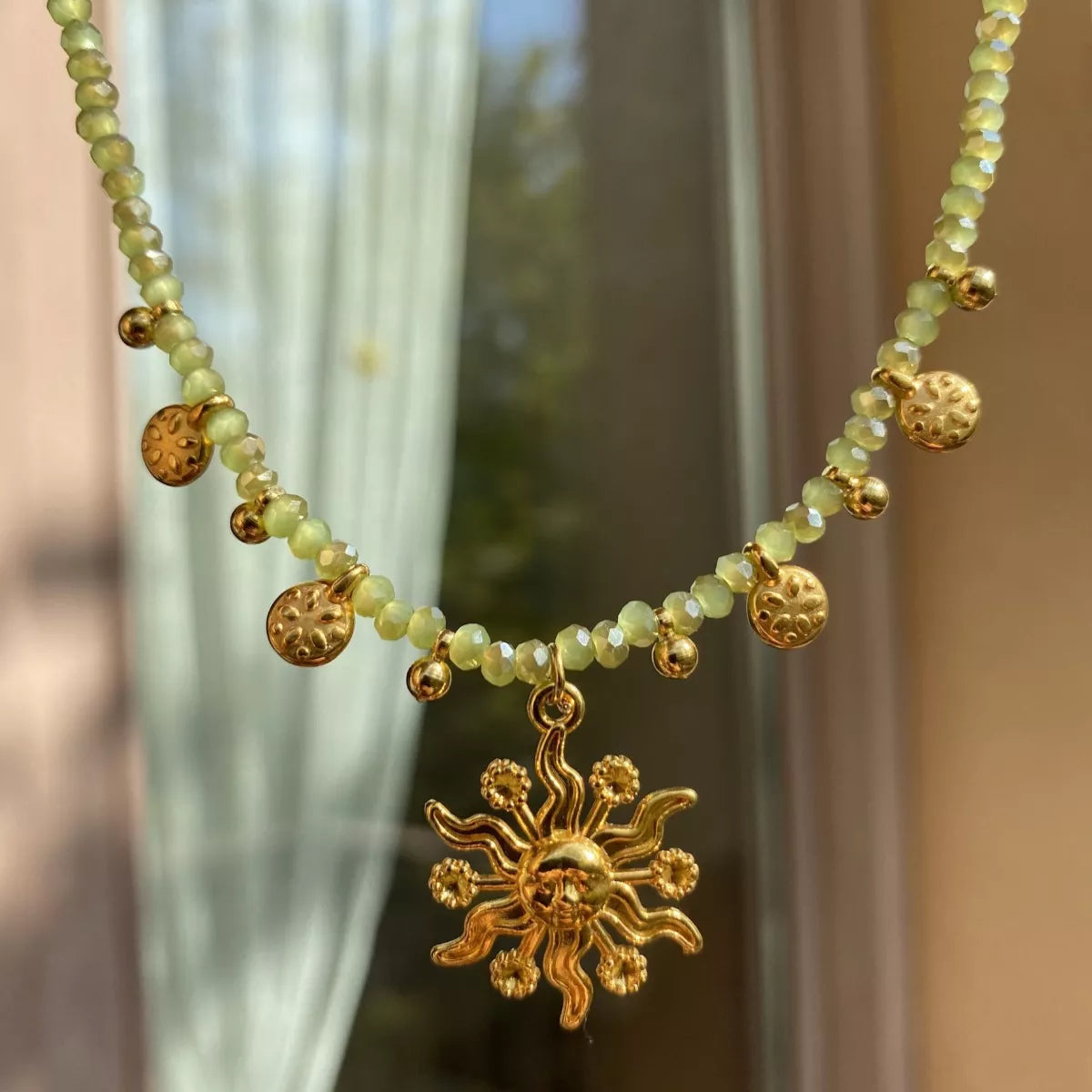 14K Gold-Plated Bead Sun Pendant Necklace