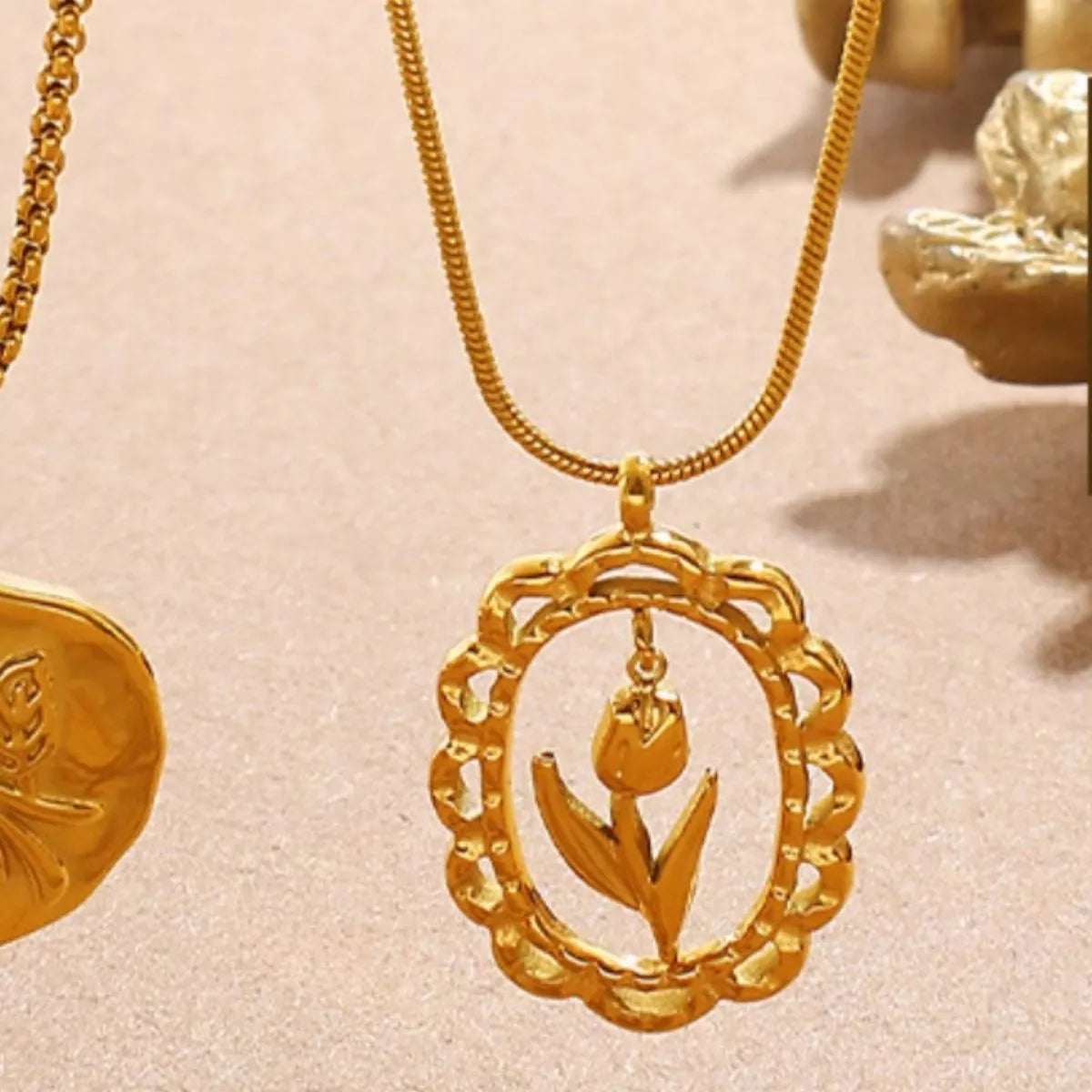 18K Gold-Plated Stainless Steel Flower Pendant Necklace