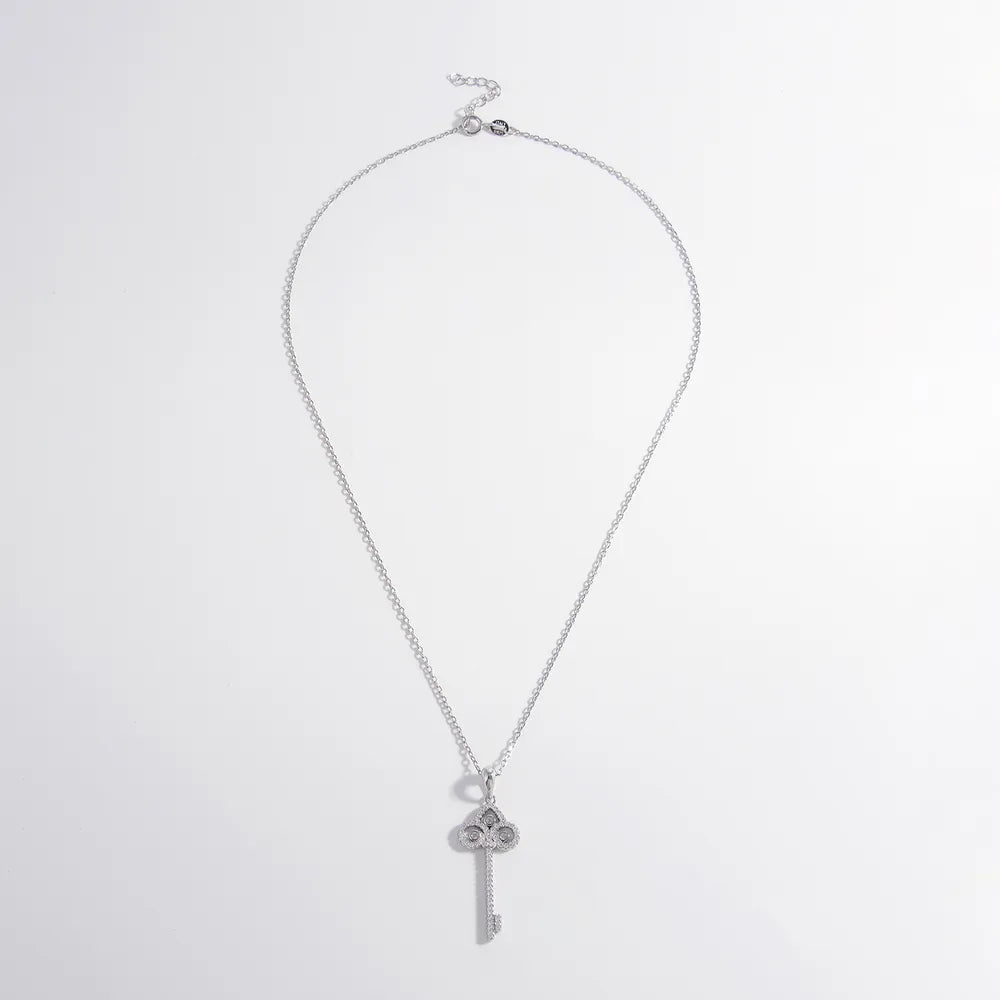 925 Sterling Silver Inlaid Zircon Key Shape Necklace