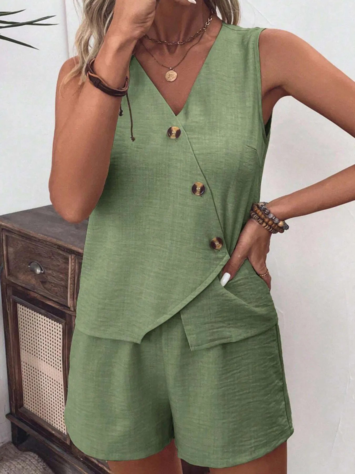 Button Up Vest and Shorts Set