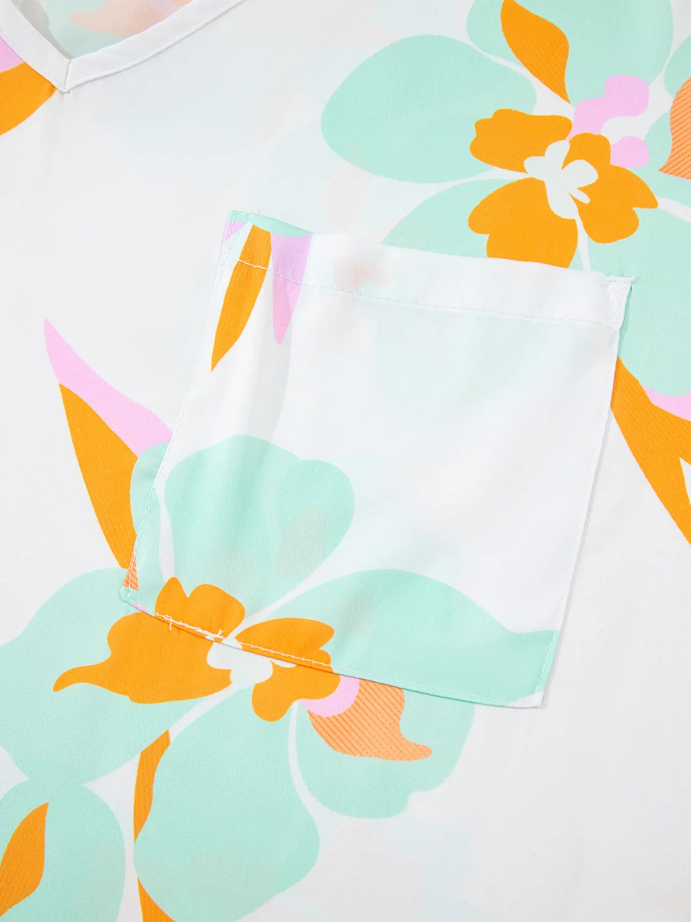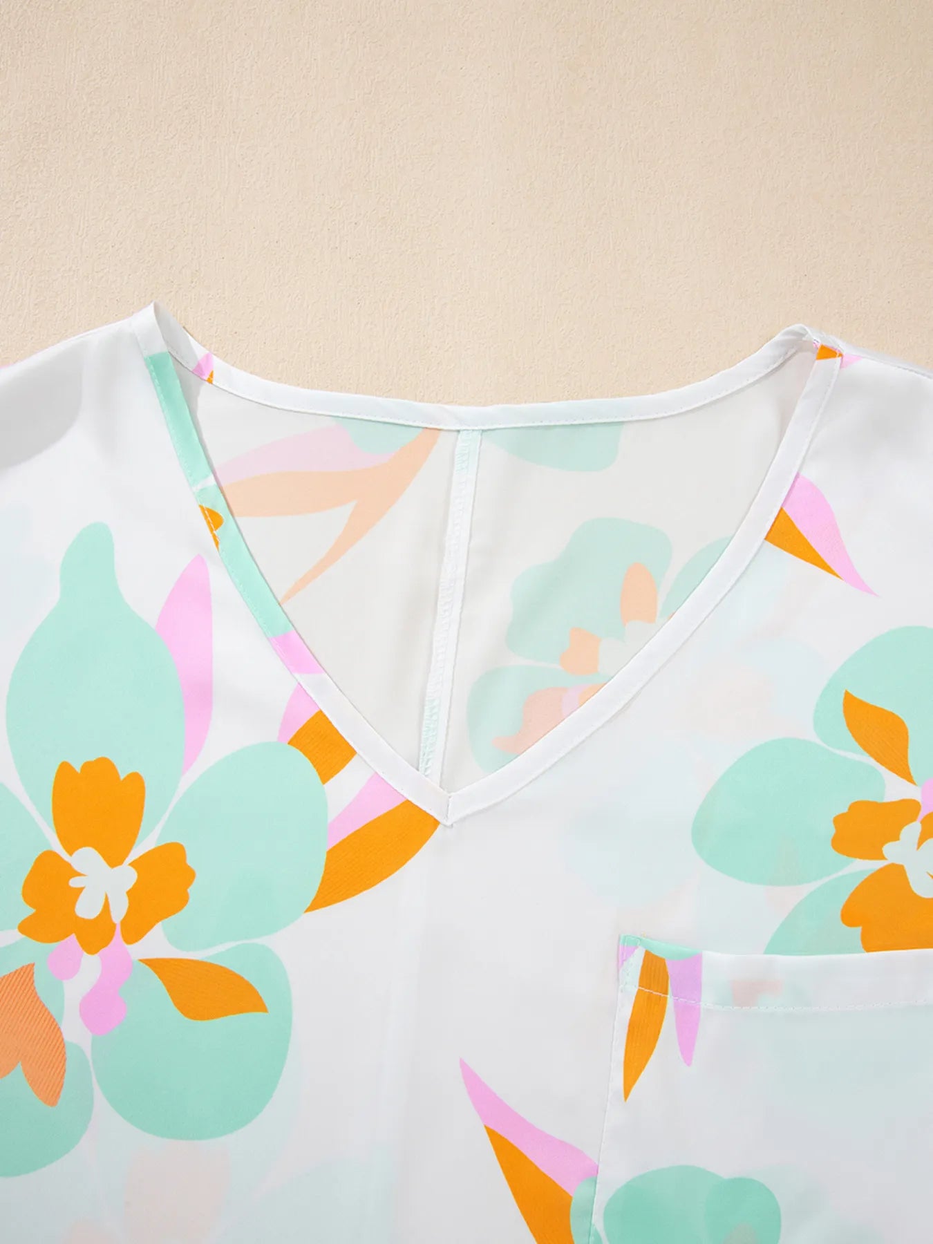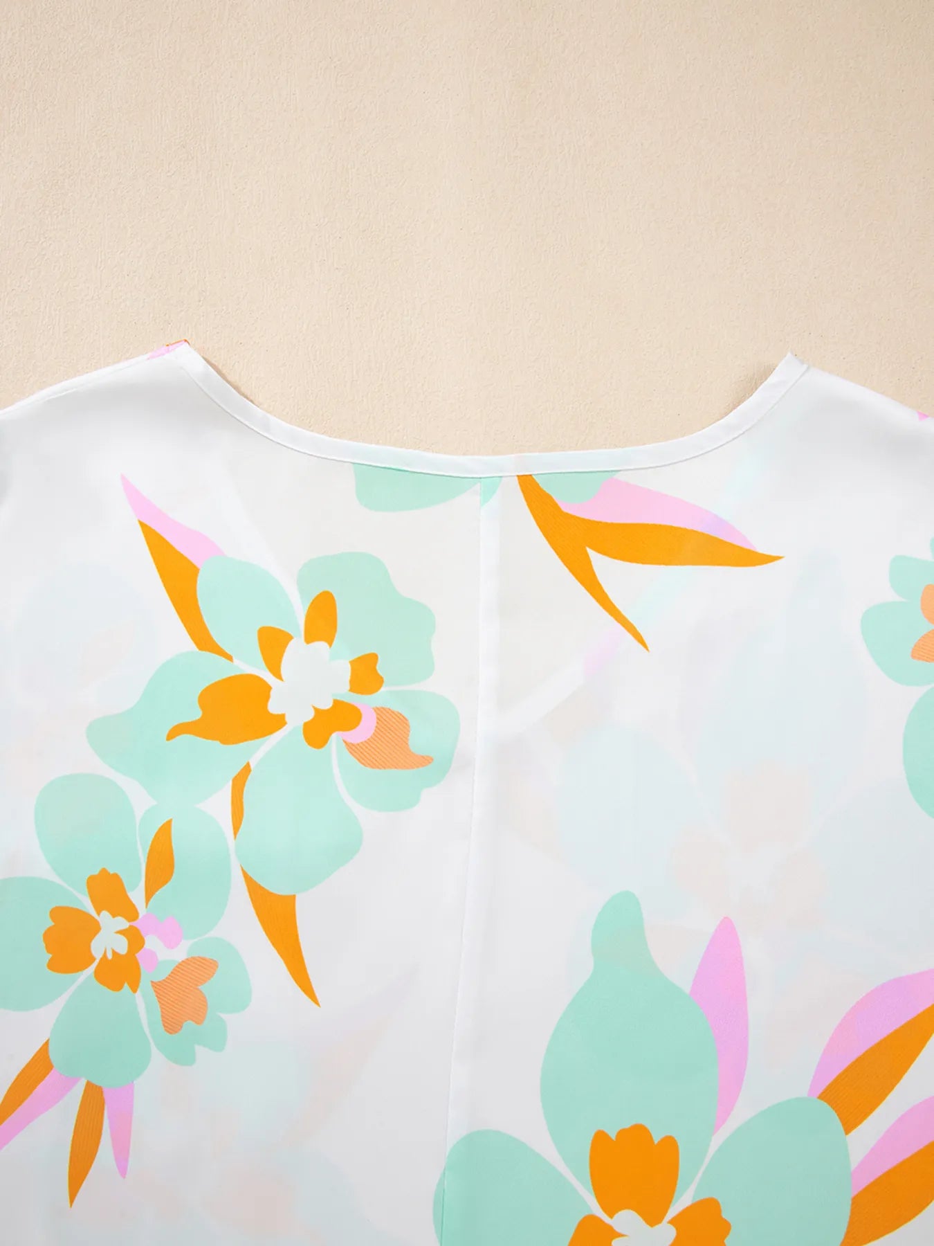 Floral Print Loose Fit V Neck Half Sleeve Blouse