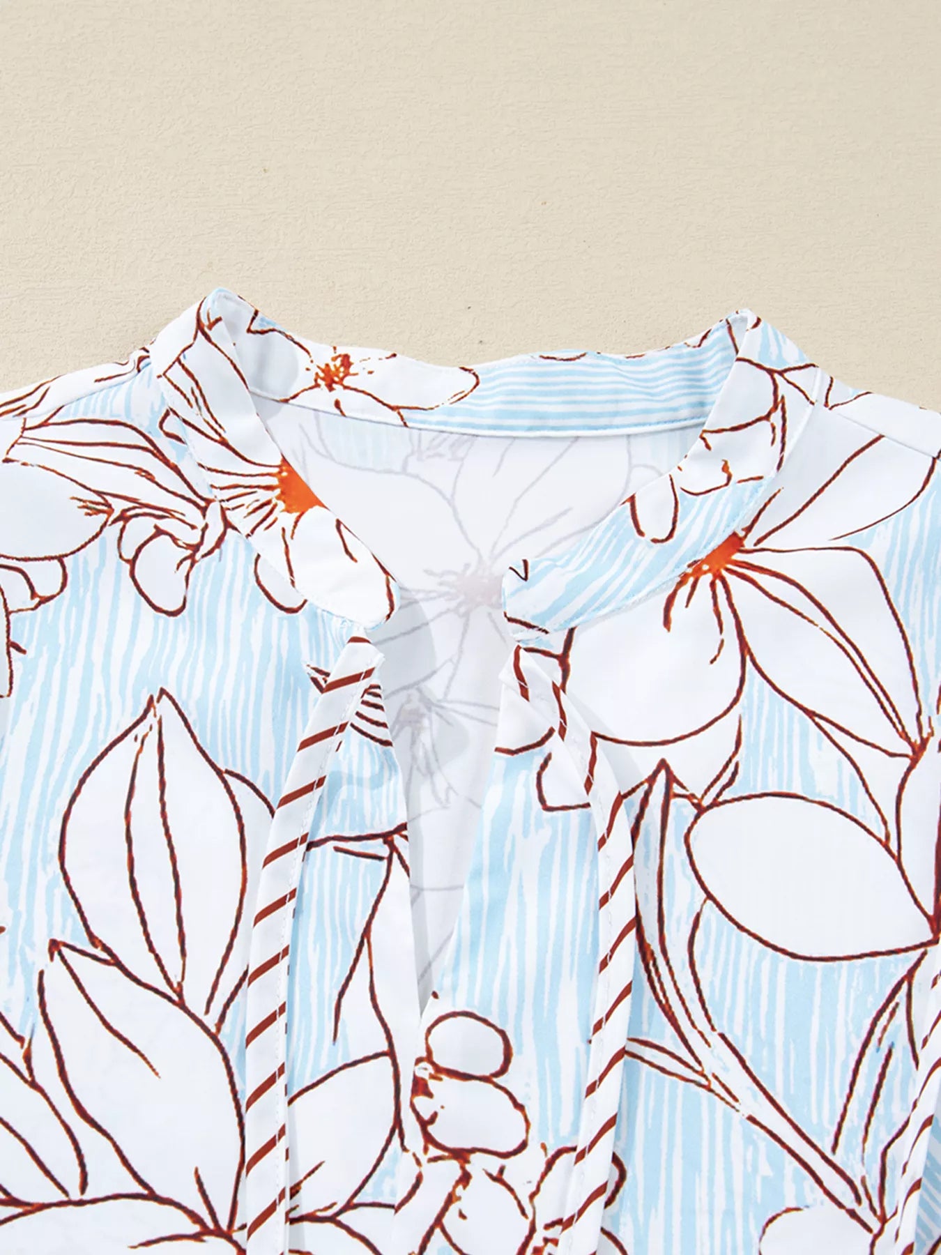 Floral Print Tie Neck Long Sleeve Mini Dress
