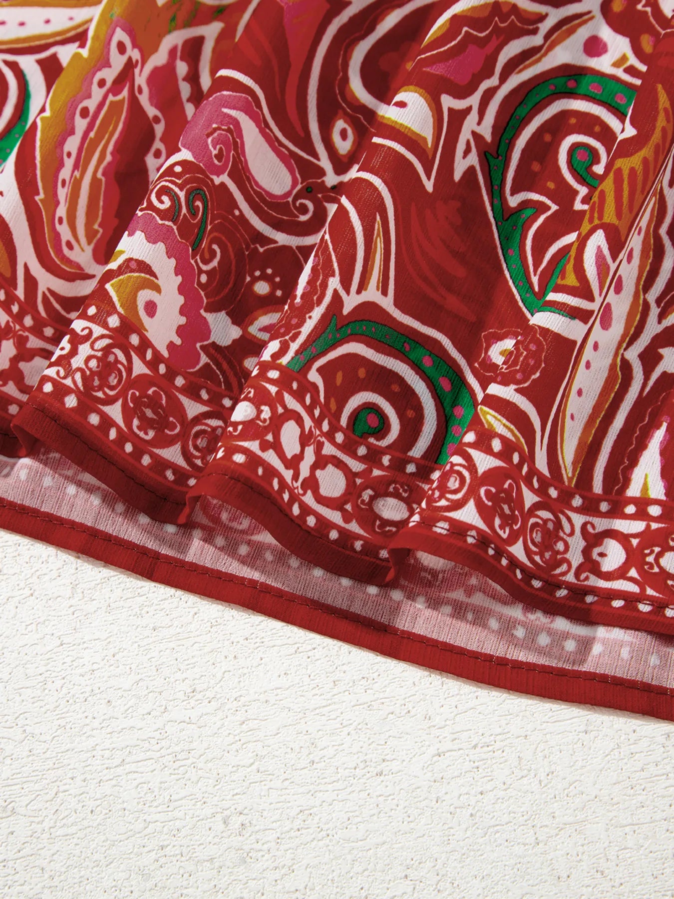 Multicolour Ethnic Paisley Print Tassel Tie Puff Sleeve Boho Blouse