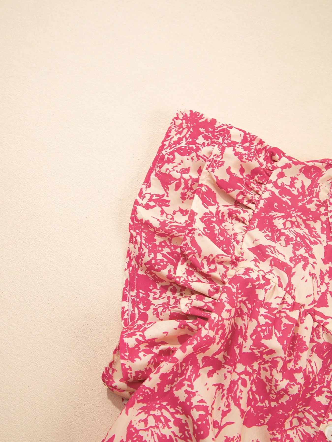 Printed Half Button Neck Ruffle Sleeve Blouse