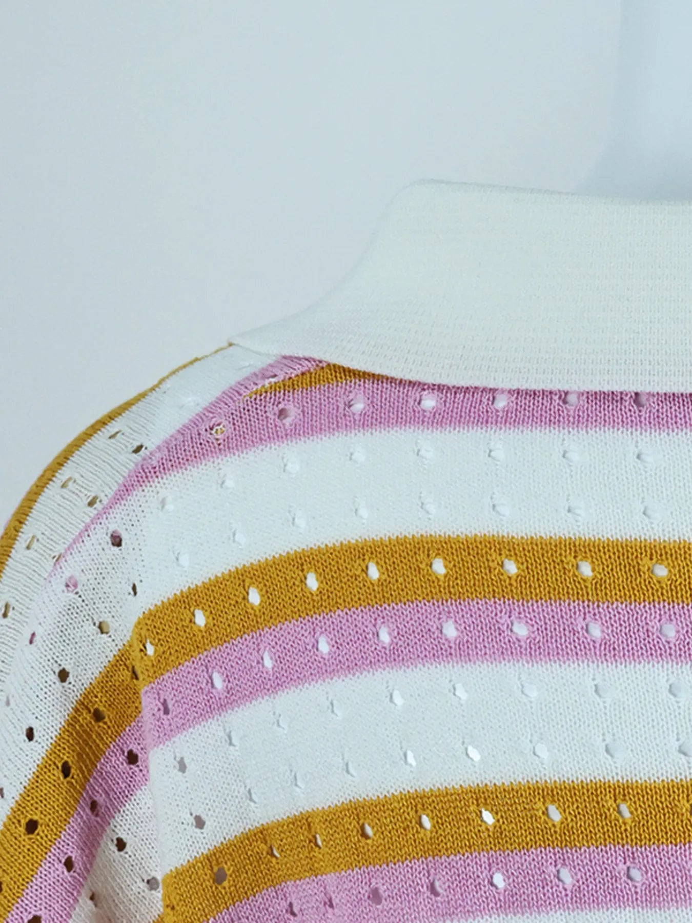 Striped Eyelet Button Up Shirt and Shorts Set