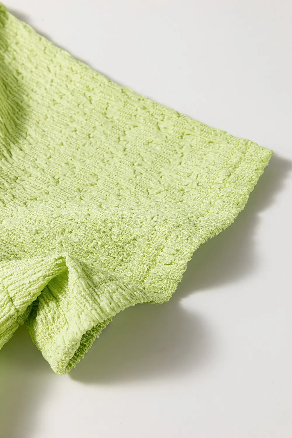 Textured Short Sleeve Patched Pocket Buttoned Romper